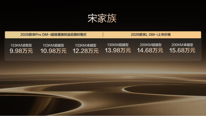 10月23日,比亚迪宋家族带着“大升级”来了——2026款宋L DM-i和宋Pro DM-i双车同步上市,限时售价覆盖9.98万到15.68万元,诚意满满。